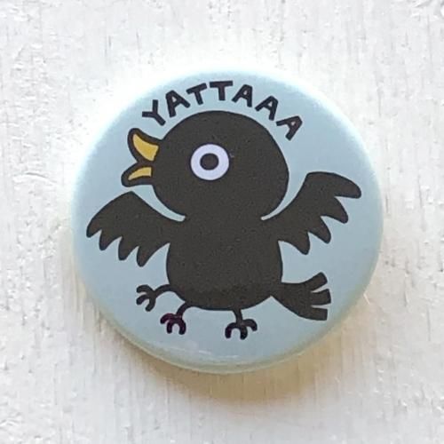 「ヤッター」とさけぶ八咫烏の缶バッヂ