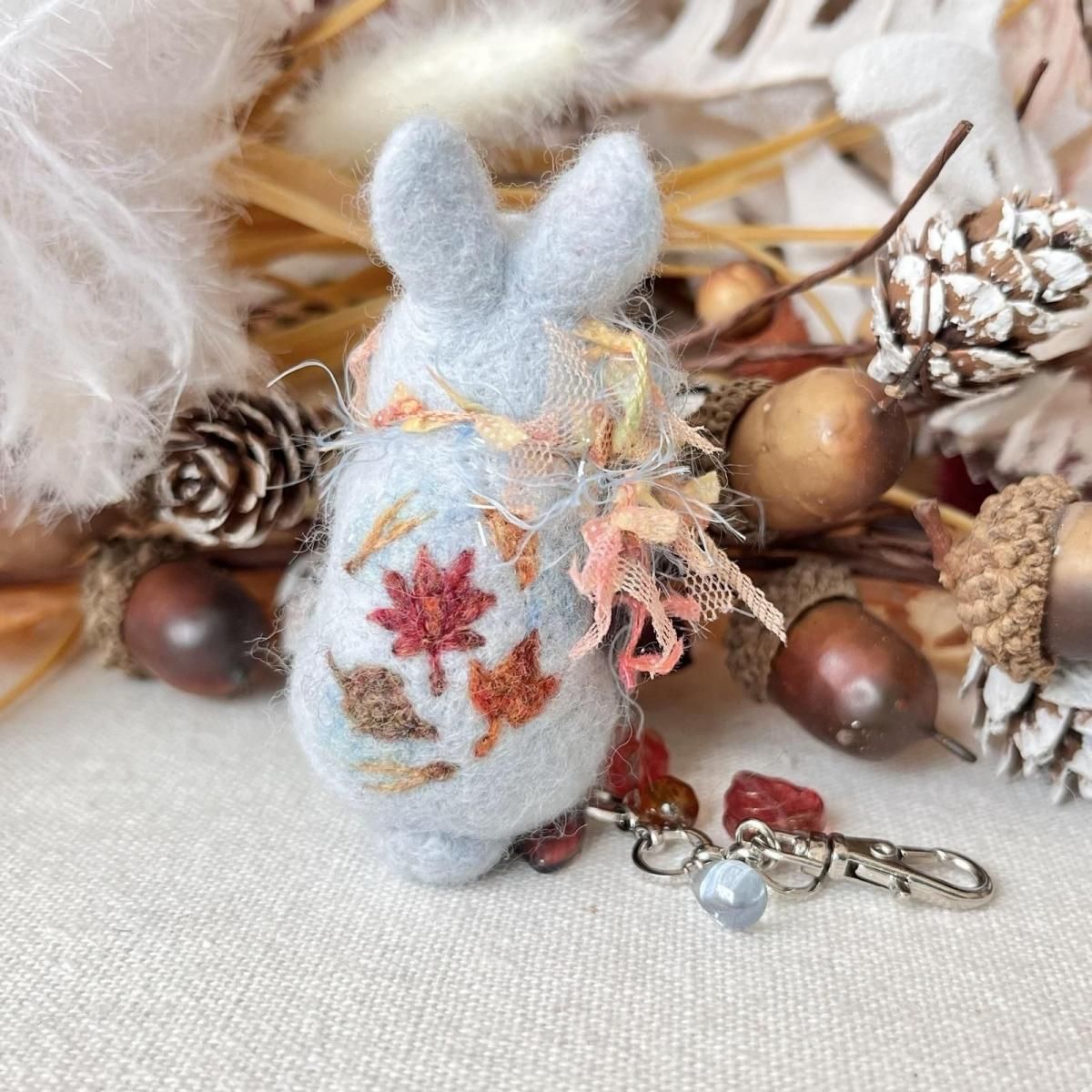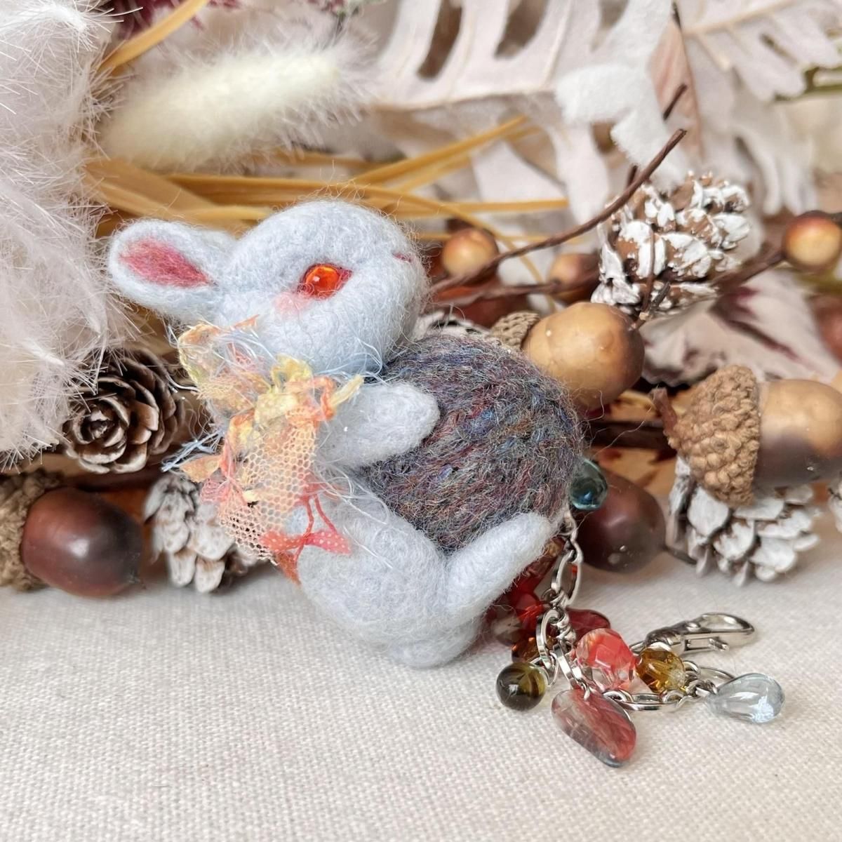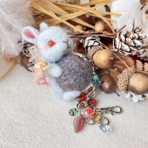 バッグチャーム ウサギと毛糸玉【水面錦】